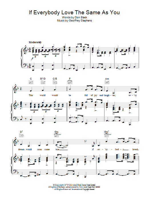Quick facts If Everybody Loved The Same As You about digital sheet music