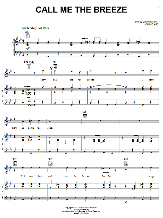 Quick facts Call Me The Breeze about digital sheet music