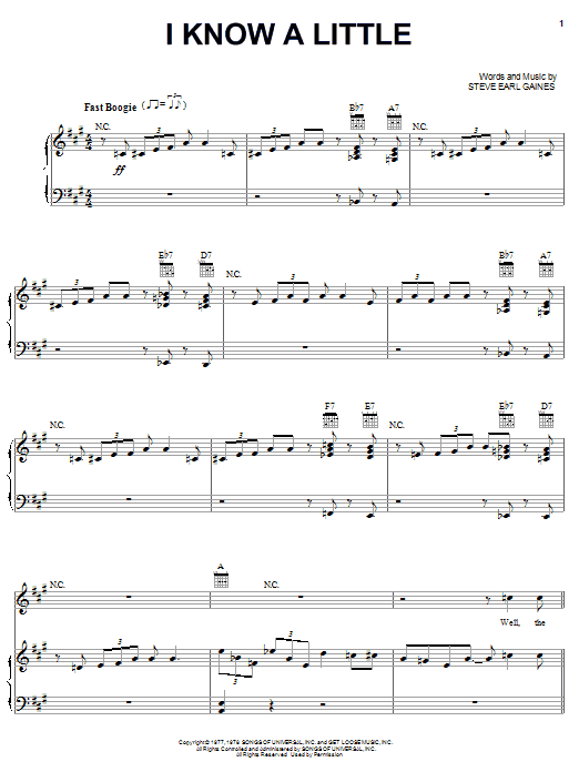 Download or print Lynyrd Skynyrd I Know A Little sheet music, chords and digital score arranged for Piano, Vocal & Guitar Chords (Right-Hand Melody). This Country score includes 6 page(s).