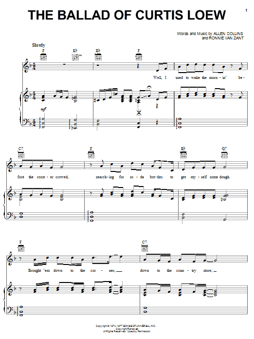 Download or print Lynyrd Skynyrd The Ballad Of Curtis Loew sheet music, chords and digital score arranged for Piano, Vocal & Guitar Chords (Right-Hand Melody). This Country score includes 4 page(s).