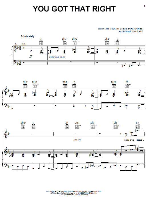 Download or print Lynyrd Skynyrd You Got That Right sheet music, chords and digital score arranged for Guitar Tab. This Country score includes 13 page(s).