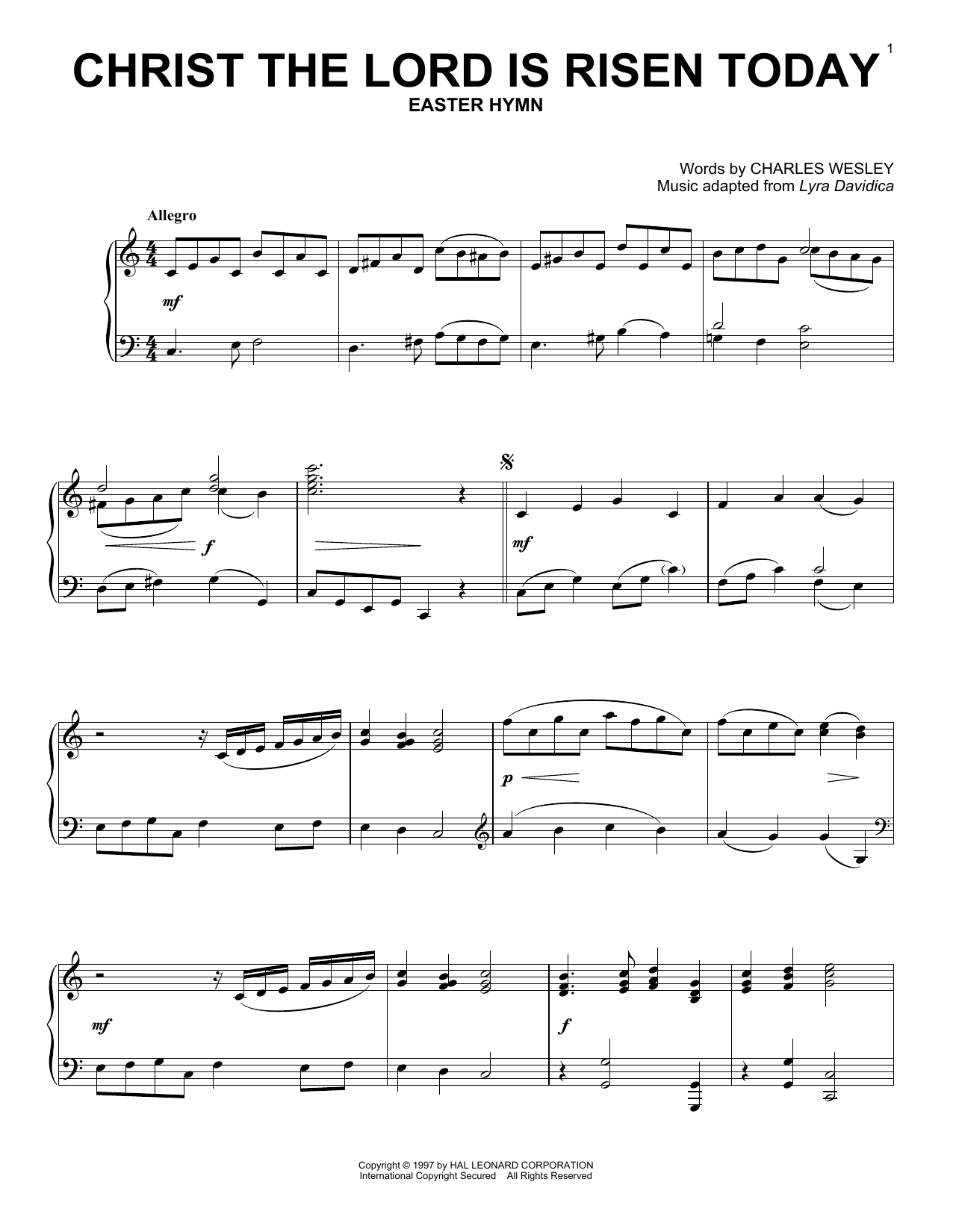 Download or print Lyra Davidica Christ The Lord Is Risen Today sheet music, chords and digital score arranged for Easy Piano. This Easter score includes 3 page(s).