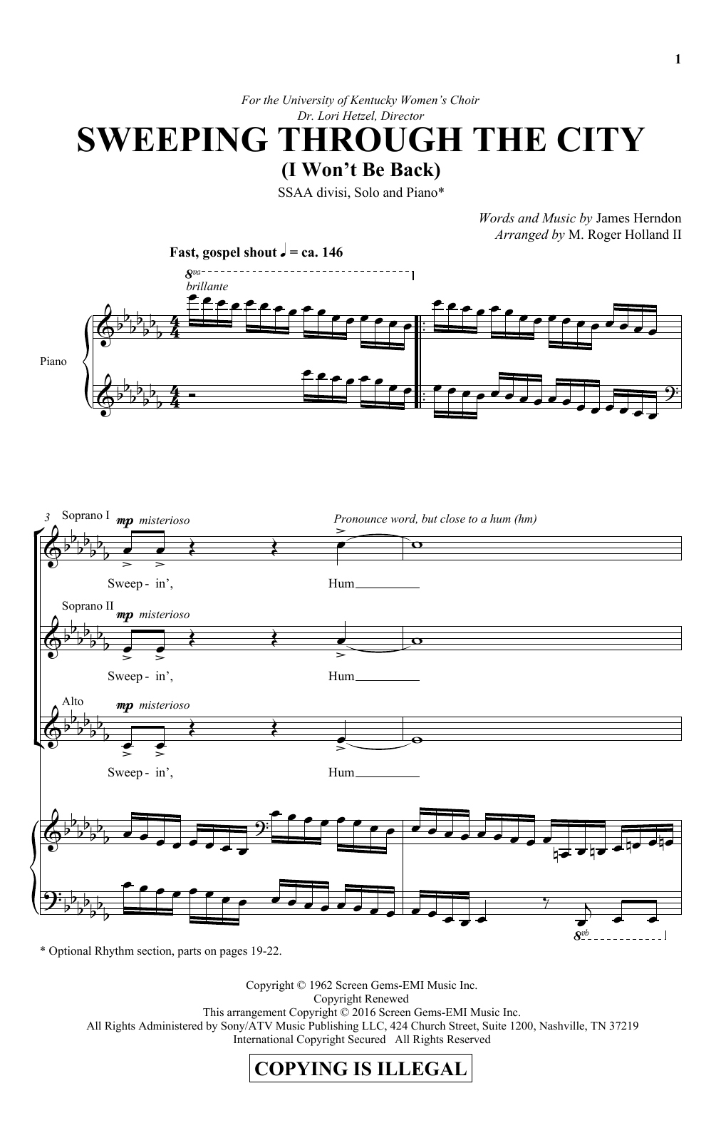 Download or print M. Roger Holland Sweeping Through The City (I Won't Be Back) sheet music, chords and digital score arranged for SSA Choir. This Concert score includes 22 page(s).