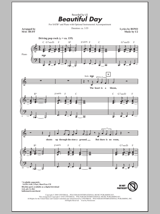 Download or print Mac Huff Beautiful Day sheet music, chords and digital score arranged for SAB Choir. This Pop score includes 13 page(s).