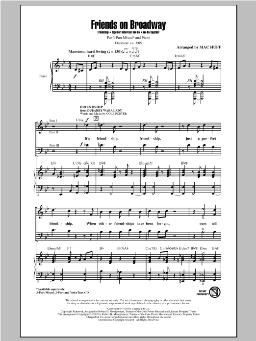 Download or print Mac Huff Friends on Broadway sheet music, chords and digital score arranged for 3-Part Mixed Choir. This Broadway score includes 14 page(s).
