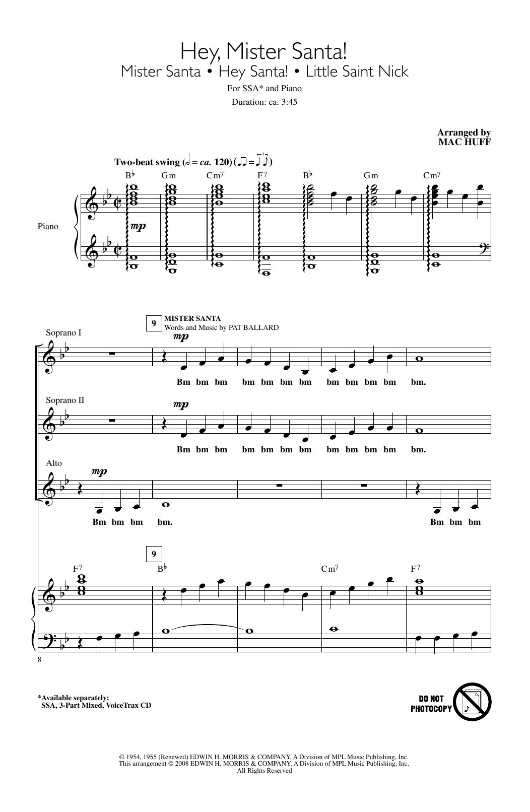 Download or print Mac Huff Hey Santa! sheet music, chords and digital score arranged for 3-Part Mixed Choir. This Holiday score includes 21 page(s).