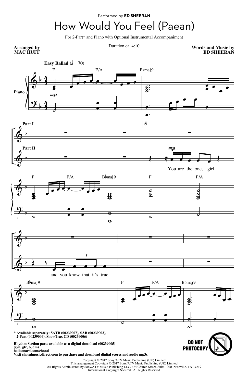 Download or print Ed Sheeran How Would You Feel (Paean) (arr. Mac Huff) sheet music, chords and digital score arranged for SATB Choir. This Pop score includes 11 page(s).