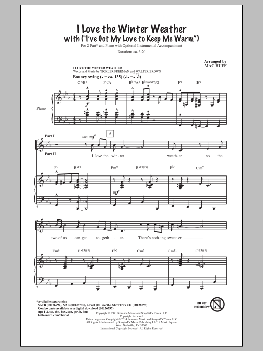 Download or print Mac Huff I Love The Winter Weather sheet music, chords and digital score arranged for SAB Choir. This Winter score includes 3 page(s).