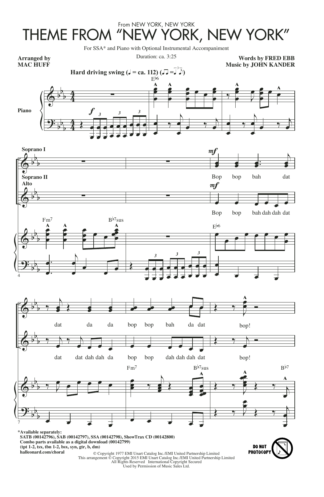 Download or print Mac Huff Theme From "New York, New York" sheet music, chords and digital score arranged for SSA Choir. This Pop score includes 10 page(s).