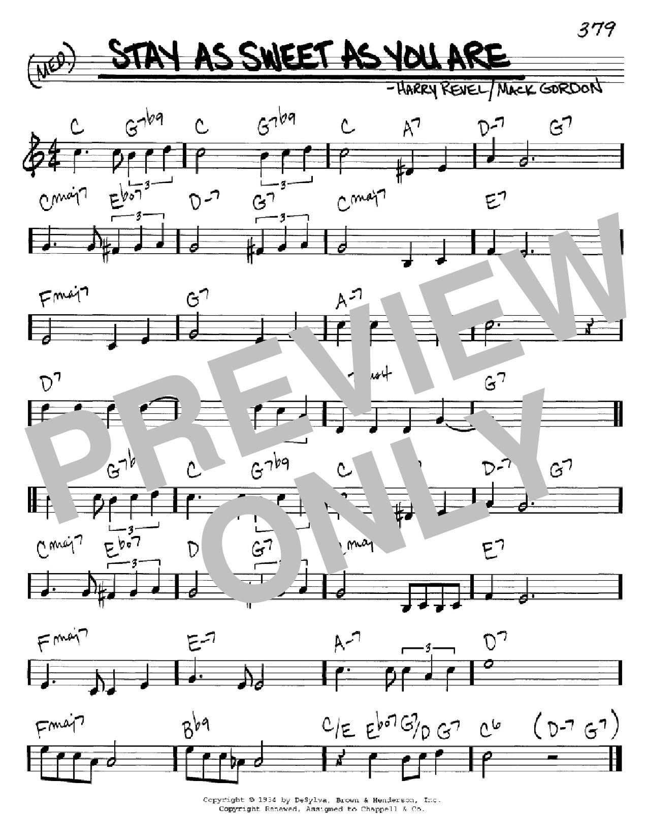 Download or print Mack Gordon Stay As Sweet As You Are sheet music, chords and digital score arranged for Real Book – Melody & Chords – C Instruments. This Jazz score includes 1 page(s).