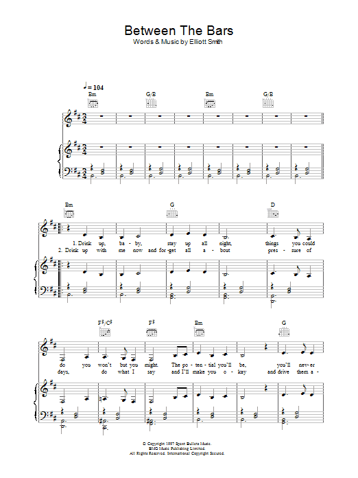 Download or print Madeleine Peyroux Between The Bars sheet music, chords and digital score arranged for Piano, Vocal & Guitar Chords. This Jazz score includes 3 page(s).