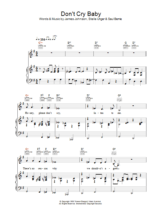 Download or print Madeleine Peyroux Don't Cry Baby sheet music, chords and digital score arranged for Piano, Vocal & Guitar Chords. This Jazz score includes 5 page(s).