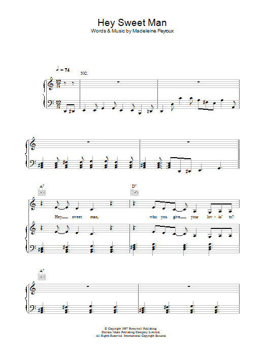 Download or print Madeleine Peyroux Hey Sweet Man sheet music, chords and digital score arranged for Piano, Vocal & Guitar Chords. This Blues score includes 6 page(s).