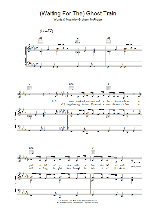 Download or print Madness Waiting For The Ghost Train sheet music, chords and digital score arranged for Piano, Vocal & Guitar Chords. This Pop score includes 8 page(s).