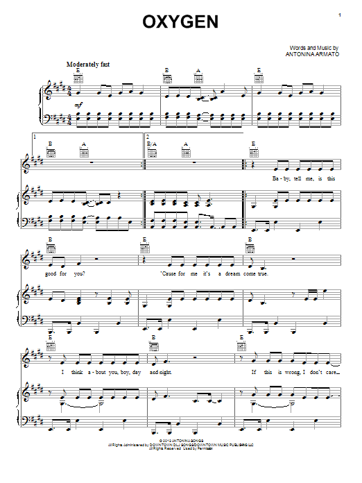 Download or print Maia Mitchell Oxygen sheet music, chords and digital score arranged for Piano, Vocal & Guitar Chords (Right-Hand Melody). This Pop score includes 6 page(s).