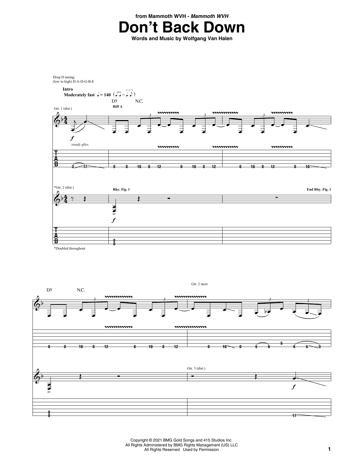 Download or print Mammoth WVH Don't Back Down sheet music, chords and digital score arranged for Guitar Tab. This Rock score includes 12 page(s).