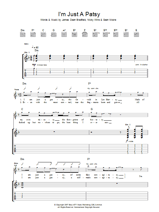 Download or print Manic Street Preachers I'm Just A Patsy sheet music, chords and digital score arranged for Guitar Tab. This Rock score includes 5 page(s).
