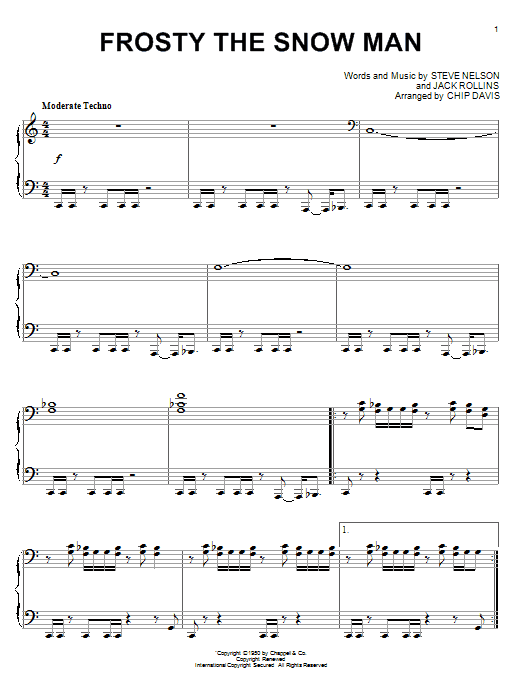 Download or print Mannheim Steamroller Frosty The Snow Man sheet music, chords and digital score arranged for Piano Solo. This Christmas score includes 4 page(s).