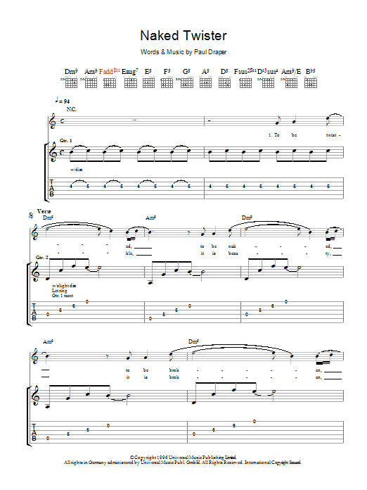 Download or print Mansun Naked Twister sheet music, chords and digital score arranged for Guitar Tab. This Rock score includes 5 page(s).