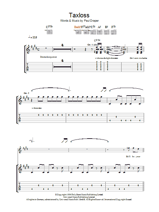 Download or print Mansun Taxloss sheet music, chords and digital score arranged for Guitar Tab. This Pop score includes 6 page(s).