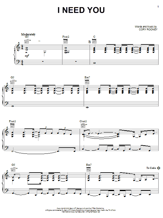 Download or print Marc Anthony I Need You sheet music, chords and digital score arranged for Piano, Vocal & Guitar Chords (Right-Hand Melody). This Pop score includes 7 page(s).