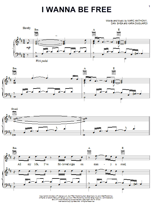 Download or print Marc Anthony I Wanna Be Free sheet music, chords and digital score arranged for Piano, Vocal & Guitar Chords (Right-Hand Melody). This Latin score includes 6 page(s).