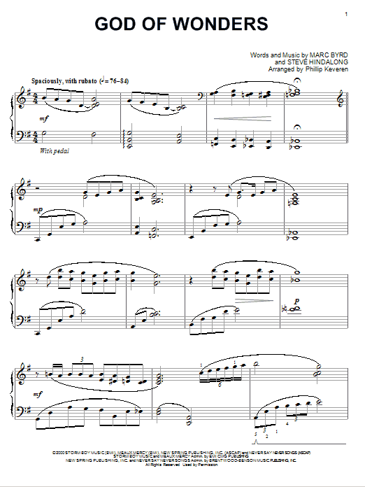 Download or print Marc Byrd God Of Wonders [Jazz version] (arr. Phillip Keveren) sheet music, chords and digital score arranged for Piano Solo. This Christian score includes 3 page(s).