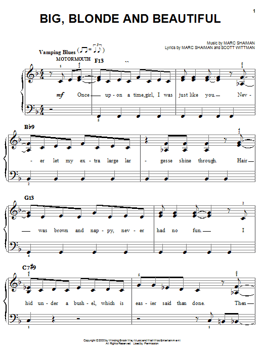 Download or print Marc Shaiman Big, Blonde And Beautiful sheet music, chords and digital score arranged for Piano & Vocal. This Film/TV score includes 10 page(s).