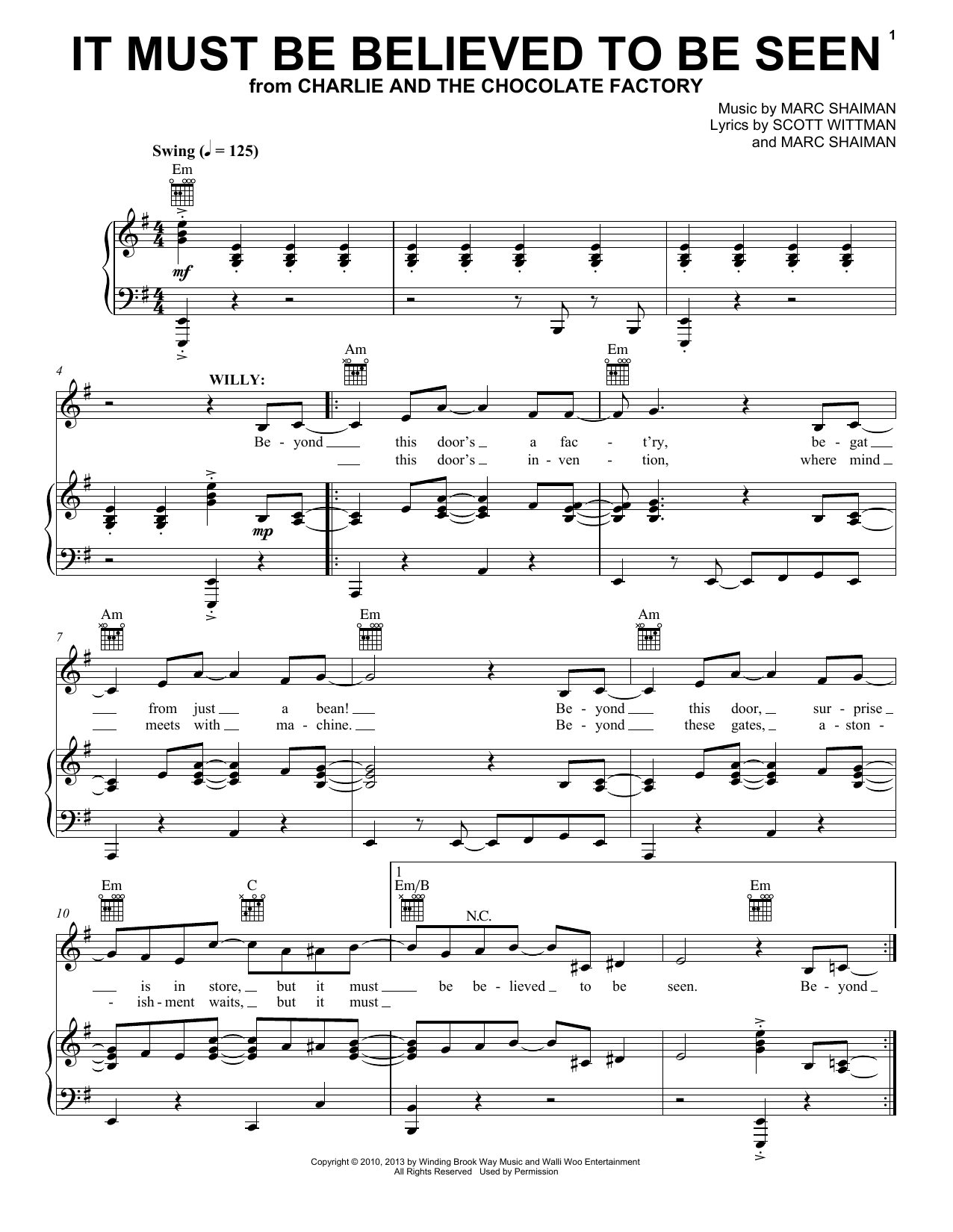 Download or print Marc Shaiman & Scott Wittman It Must Be Believed To Be Seen sheet music, chords and digital score arranged for Piano, Vocal & Guitar Chords (Right-Hand Melody). This Musical/Show score includes 8 page(s).