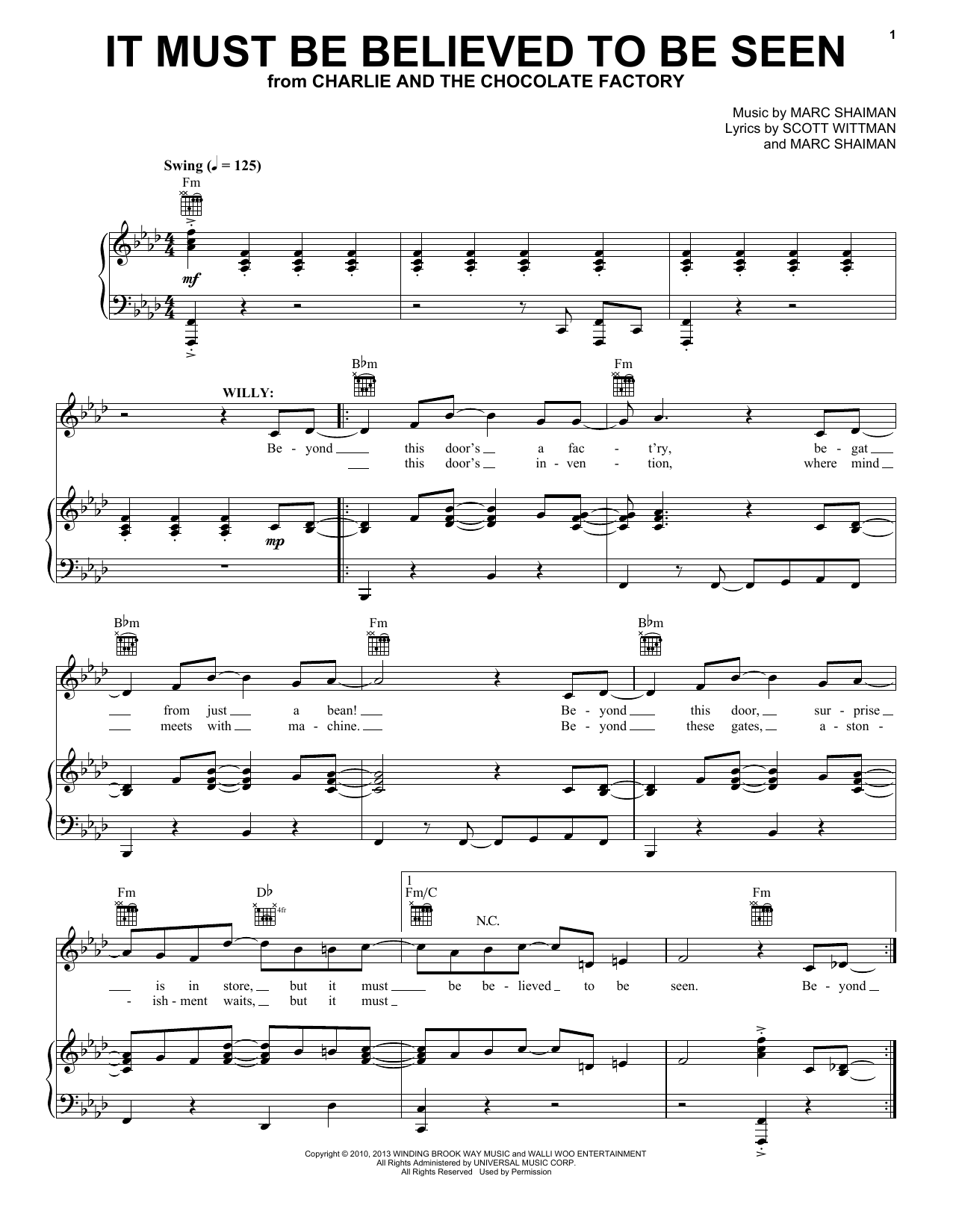 Download or print Marc Shaiman It Must Be Believed To Be Seen sheet music, chords and digital score arranged for Piano & Vocal. This Children score includes 8 page(s).