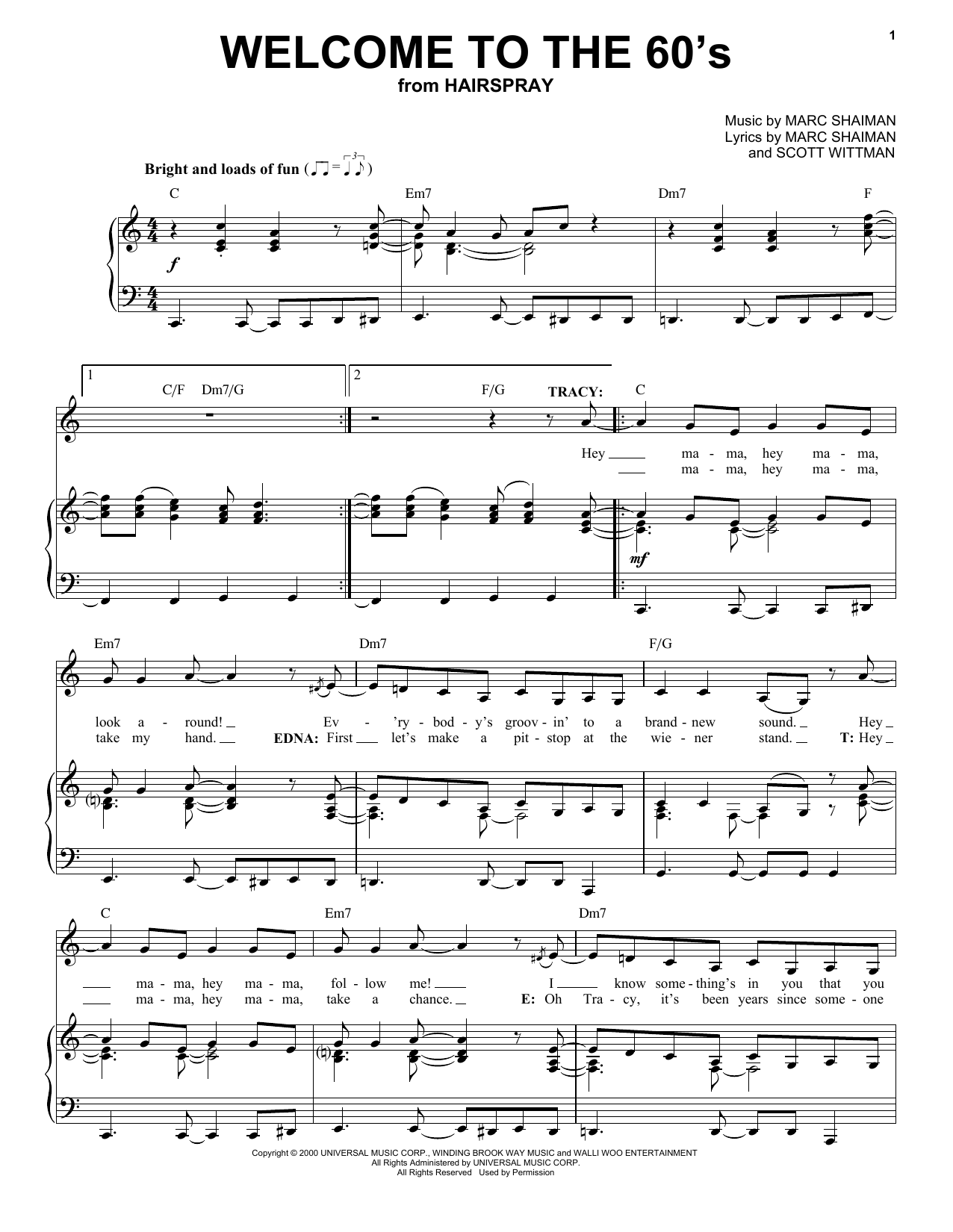 Download or print Marc Shaiman Welcome To The 60's sheet music, chords and digital score arranged for Easy Piano. This Film/TV score includes 8 page(s).
