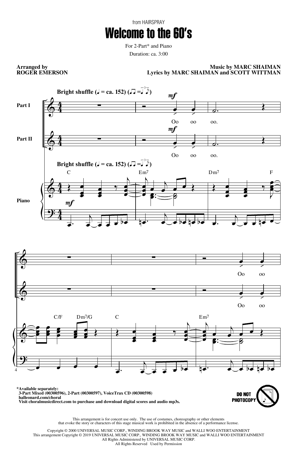 Download or print Marc Shaiman Welcome To The 60's (from Hairspray) (arr. Roger Emerson) sheet music, chords and digital score arranged for 2-Part Choir. This Musical/Show score includes 13 page(s).