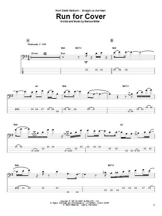 Download or print Marcus Miller Run For Cover sheet music, chords and digital score arranged for Bass Guitar Tab. This Funk score includes 16 page(s).