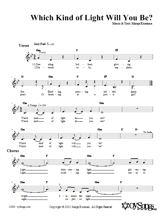 Download or print Marge Eiseman Which Kind of Light Will You Be? sheet music, chords and digital score arranged for Lead Sheet / Fake Book. This Traditional score includes 2 page(s).