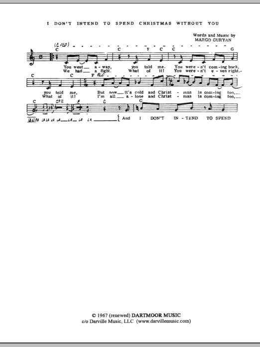 Download or print Margo Guryan I Don't Intend To Spend Christmas Without You sheet music, chords and digital score arranged for Lead Sheet / Fake Book. This Folk score includes 2 page(s).