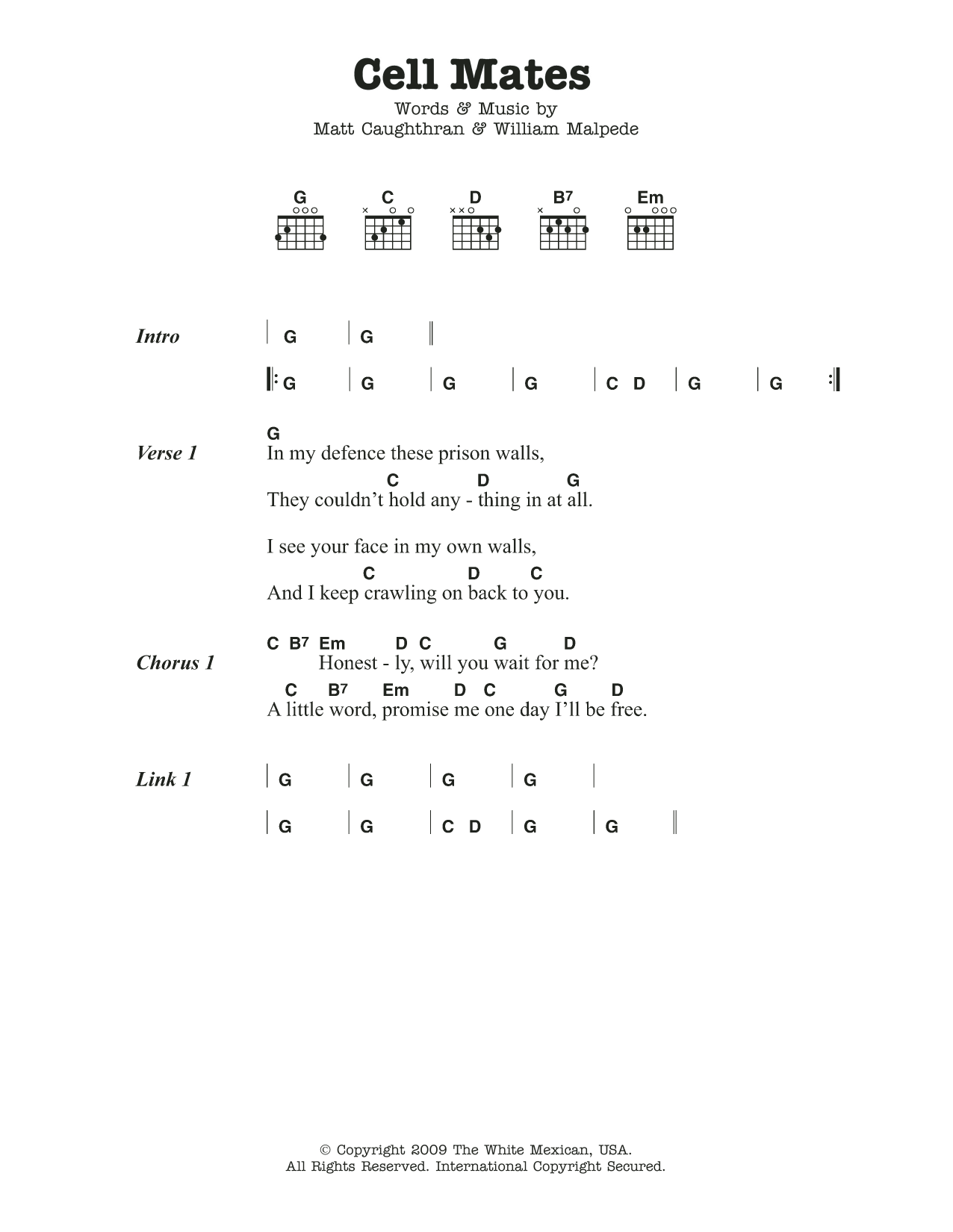 Download or print Mariachi El Bronx Cell Mates sheet music, chords and digital score arranged for Guitar Chords/Lyrics. This Pop score includes 2 page(s).