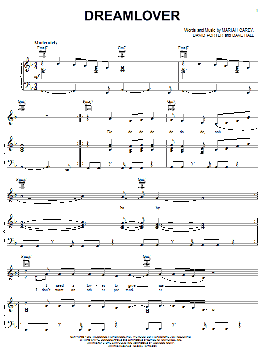 Download or print Mariah Carey Dreamlover sheet music, chords and digital score arranged for Piano, Vocal & Guitar Chords (Right-Hand Melody). This Love score includes 7 page(s).