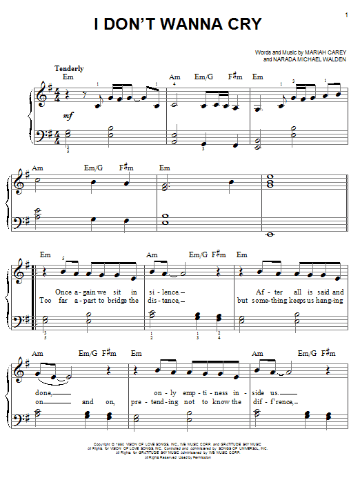 Download or print Mariah Carey I Don't Wanna Cry sheet music, chords and digital score arranged for Easy Piano. This Pop score includes 4 page(s).