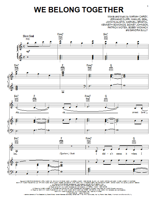 Download or print Mariah Carey We Belong Together sheet music, chords and digital score arranged for Piano Solo. This Love score includes 6 page(s).