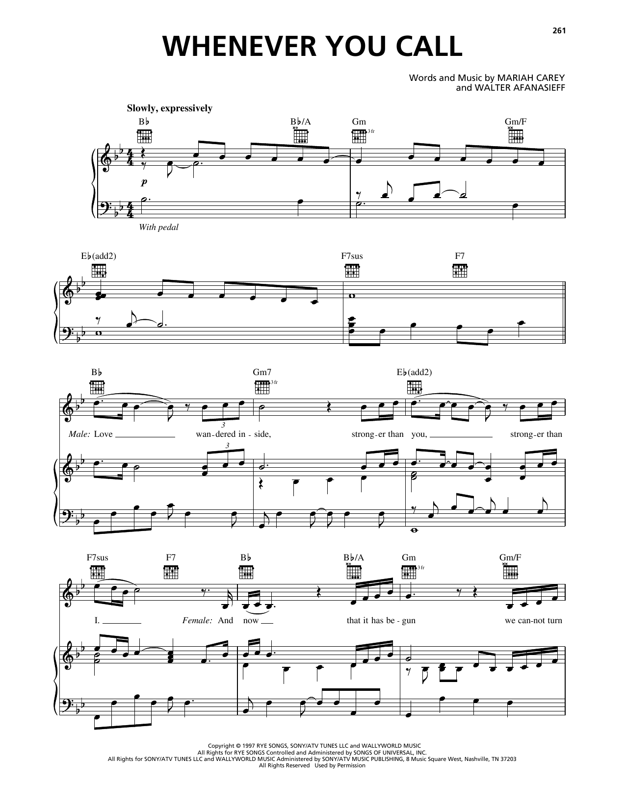 Download or print Mariah Carey Whenever You Call sheet music, chords and digital score arranged for Piano, Vocal & Guitar Chords (Right-Hand Melody). This Pop score includes 7 page(s).