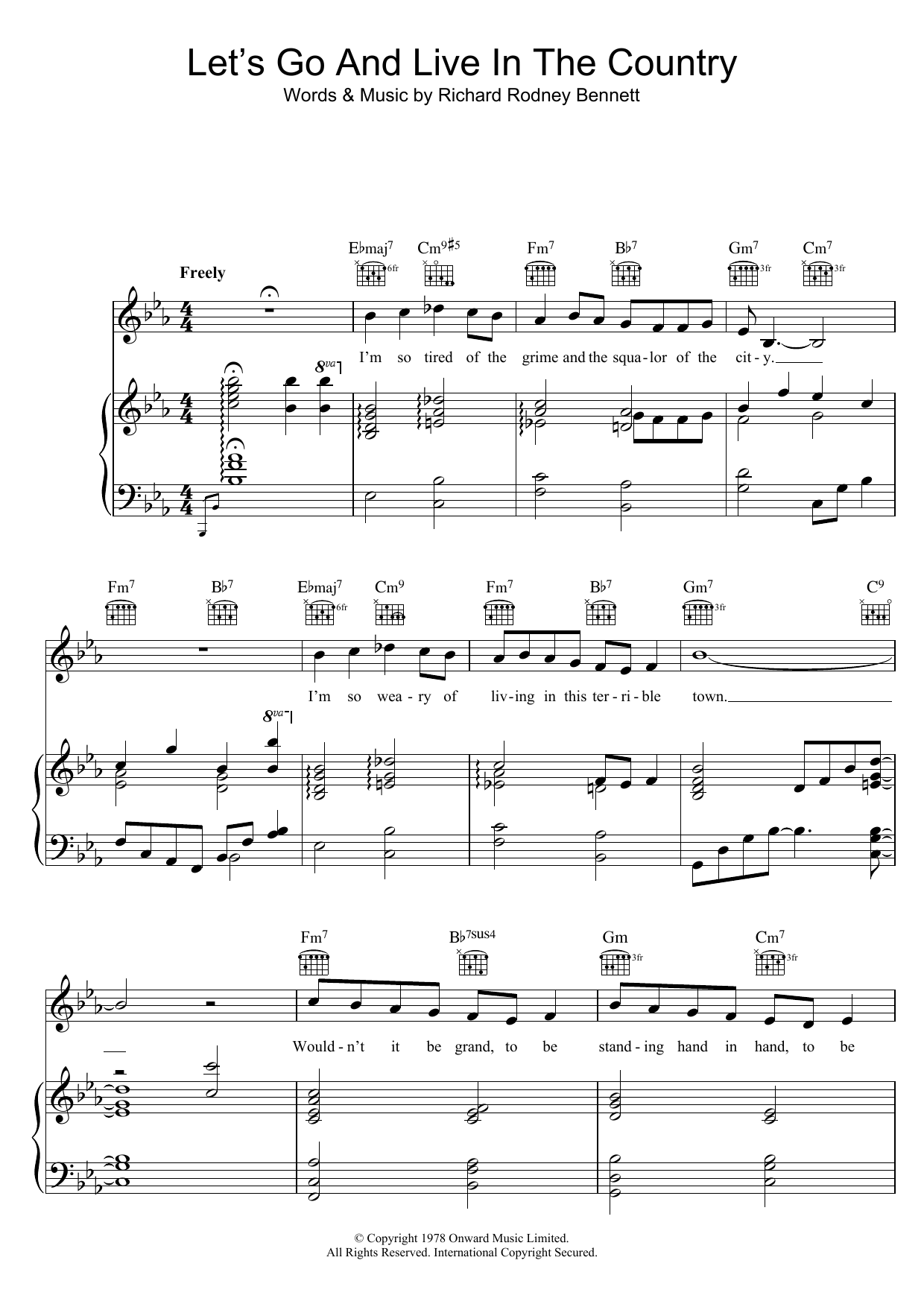 Download or print Marian Montgomery Let's Go And Live In The Country sheet music, chords and digital score arranged for Piano, Vocal & Guitar Chords. This Standards score includes 7 page(s).