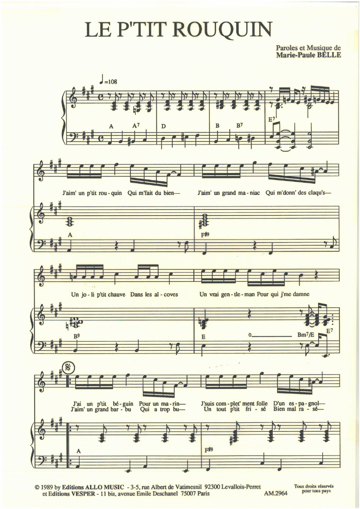 Download or print Marie Paule Belle Le P'tit Rouquin sheet music, chords and digital score arranged for Piano & Vocal. This Classical score includes 3 page(s).