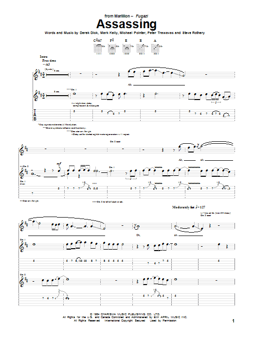 Download or print Marillion Assassing sheet music, chords and digital score arranged for Guitar Tab. This Pop score includes 13 page(s).