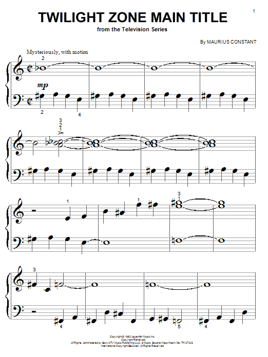 Download or print Marius Constant Twilight Zone Main Title sheet music, chords and digital score arranged for Easy Guitar Tab. This Film/TV score includes 2 page(s).
