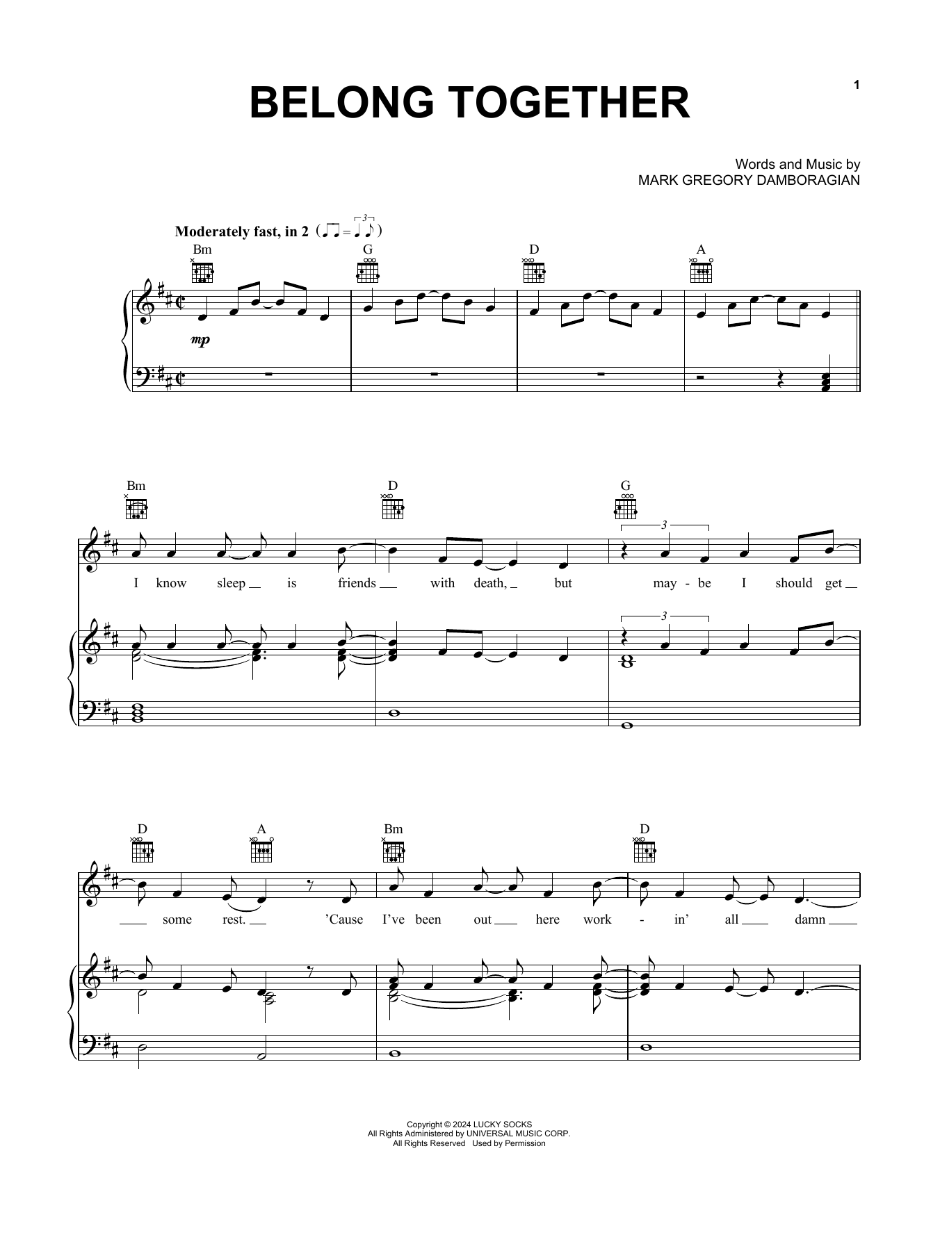 Download or print Mark Ambor Belong Together sheet music, chords and digital score arranged for Super Easy Piano. This Pop score includes 2 page(s).