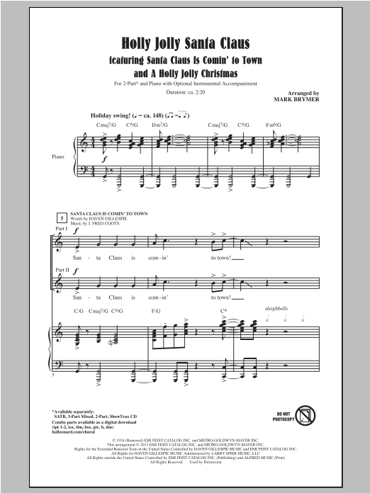 Download or print Mark Brymer A Holly Jolly Christmas sheet music, chords and digital score arranged for 3-Part Mixed Choir. This Christmas score includes 8 page(s).