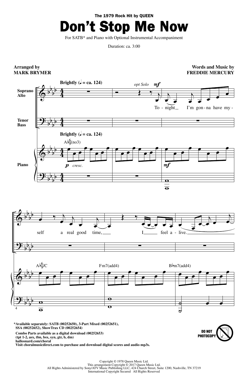 Download or print Queen Don't Stop Me Now (arr. Mark Brymer) sheet music, chords and digital score arranged for 3-Part Mixed Choir. This Pop score includes 14 page(s).