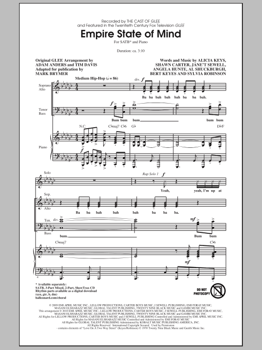 Download or print Mark Brymer Empire State Of Mind sheet music, chords and digital score arranged for 3-Part Mixed Choir. This Pop score includes 14 page(s).
