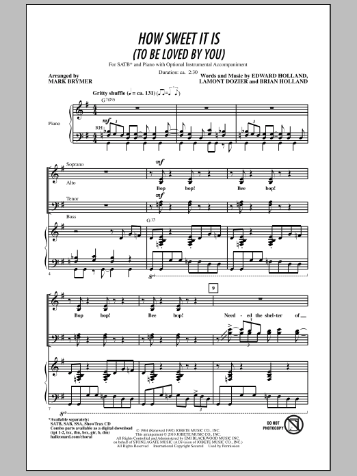 Download or print Mark Brymer How Sweet It Is (To Be Loved By You) sheet music, chords and digital score arranged for SSA Choir. This Pop score includes 10 page(s).