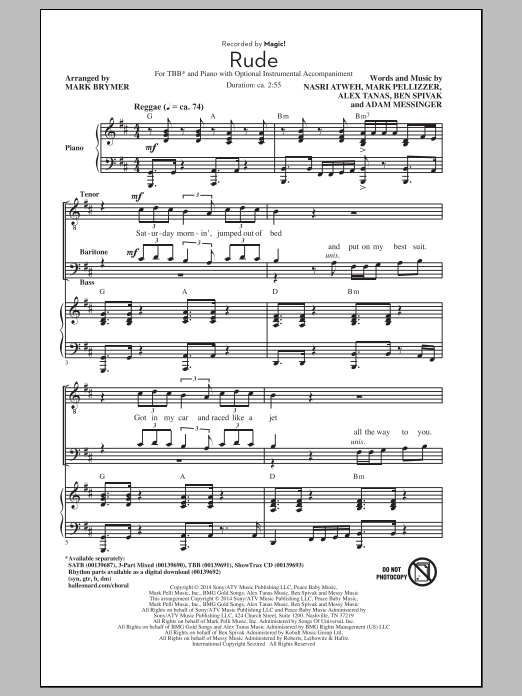Download or print Mark Brymer Rude (arr. Mark Brymer) sheet music, chords and digital score arranged for 3-Part Mixed Choir. This Pop score includes 7 page(s).